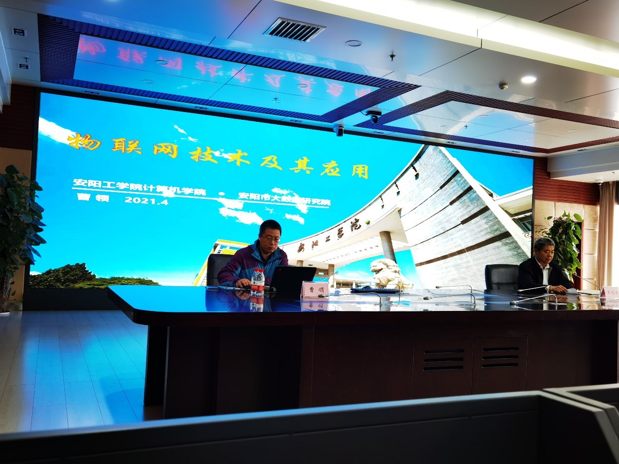 4月22日下午,我校计算机学院物联网教研室主任曹领在市民之家云计算指挥中心为安阳市政务服务和大数据管理局做了题为《物联网技术及其应用》的业务专题培训。市政务服务和大数据管理局全体工作人员及各县区大数据局业务骨干参加培训,市政务服务和大数据管理局党组书记局长王福生、计算机学院副院长侯贵法出席培训会。