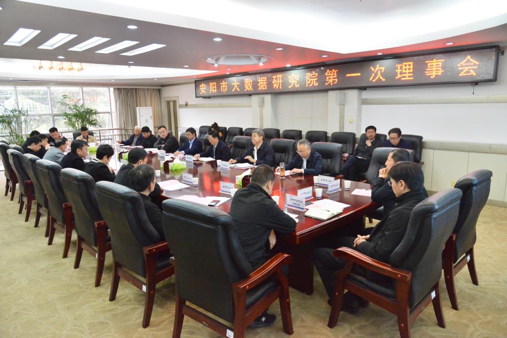 4月28日上午9时,安阳市大数据研究院第一届理事会第一次会议在我校行政楼2楼会议室召开。校长景国勋、副校长万鹏杰、安阳市政务服务与大数据管理局局长王福生、副局长靳水成等领导出席会议,安阳市高新区管委会等18家理事单位代表、我校yl9193永利集团负责人及教师代表参加会议。万鹏杰主持会议。