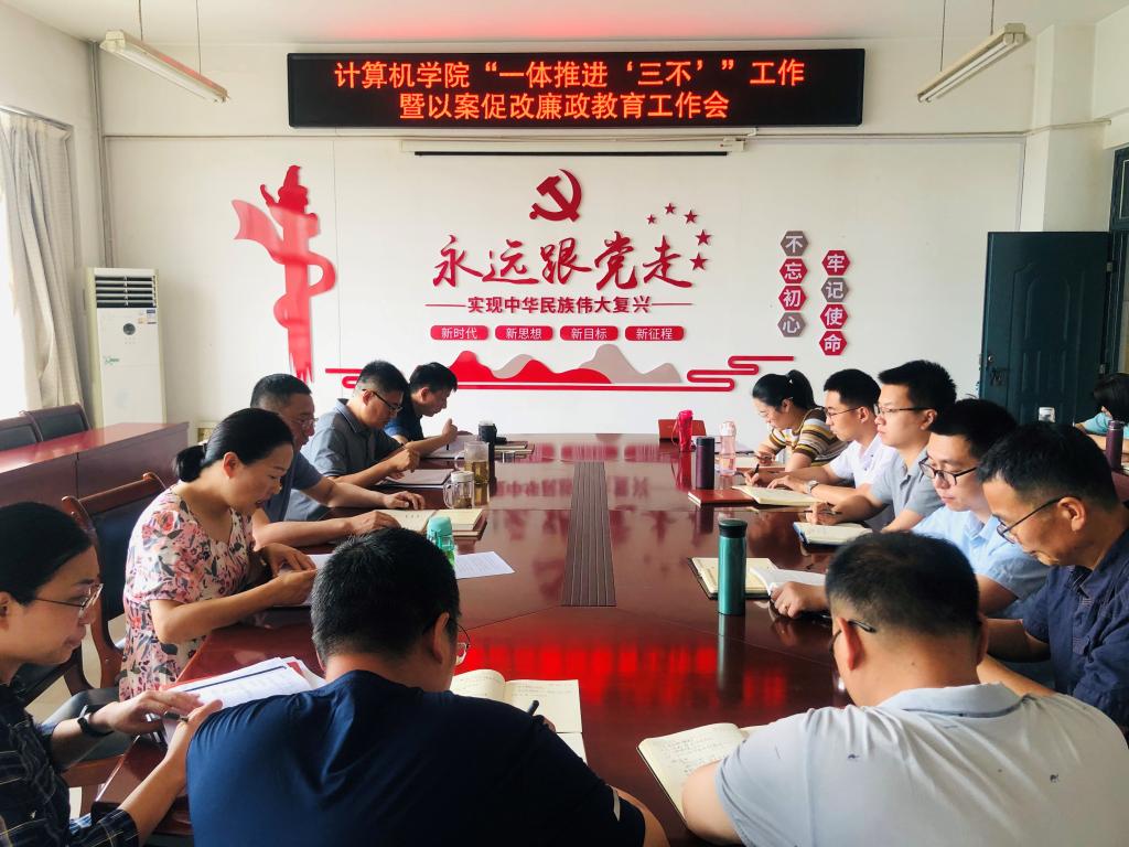 6月8日下午,计算机学院党总支在A06-309召开一体推进“三不”工作暨以案促改廉政教育工作会,学院科级以上干部和党支部书记参加会议。