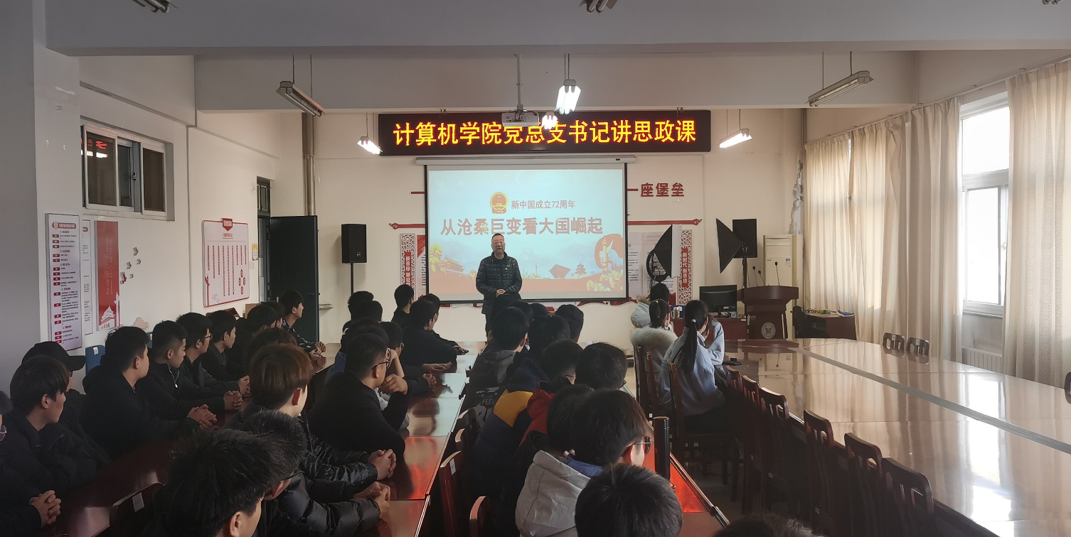 11月26日下午,计算机学院党总支书记以《从沧桑巨变看大国崛起》为题,为21级软件工程专业学生上思政课。