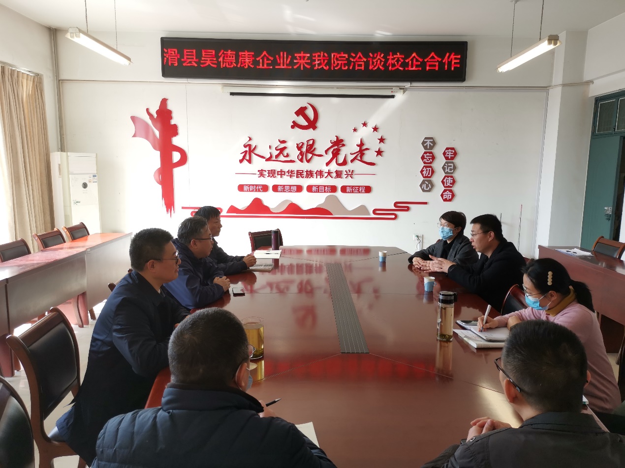 2022年3月1日,河南省昊德康医疗器械有限责任公司应邀到我院洽谈校企合作事宜。昊德康企业董事长对企业做了全面的介绍,并欢迎学院的技术力量参与产品的研发。计算机学院院长孙高飞及领导班子成员对yl9193永利集团的传统优势做了详细介绍。双方对在康复医疗器械方面的合作开发充满信心,并对初步的合作方式达成了一致意见。