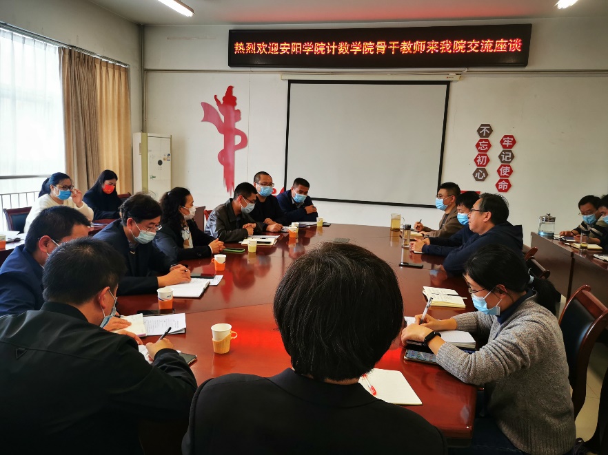 10月26日,安阳学院计数学院骨干教师一行14人来我校参观交流。计算机学院副院长孙高飞、侯贵法、李阳、各专业教研室主任、实验中心主任参加了会谈。