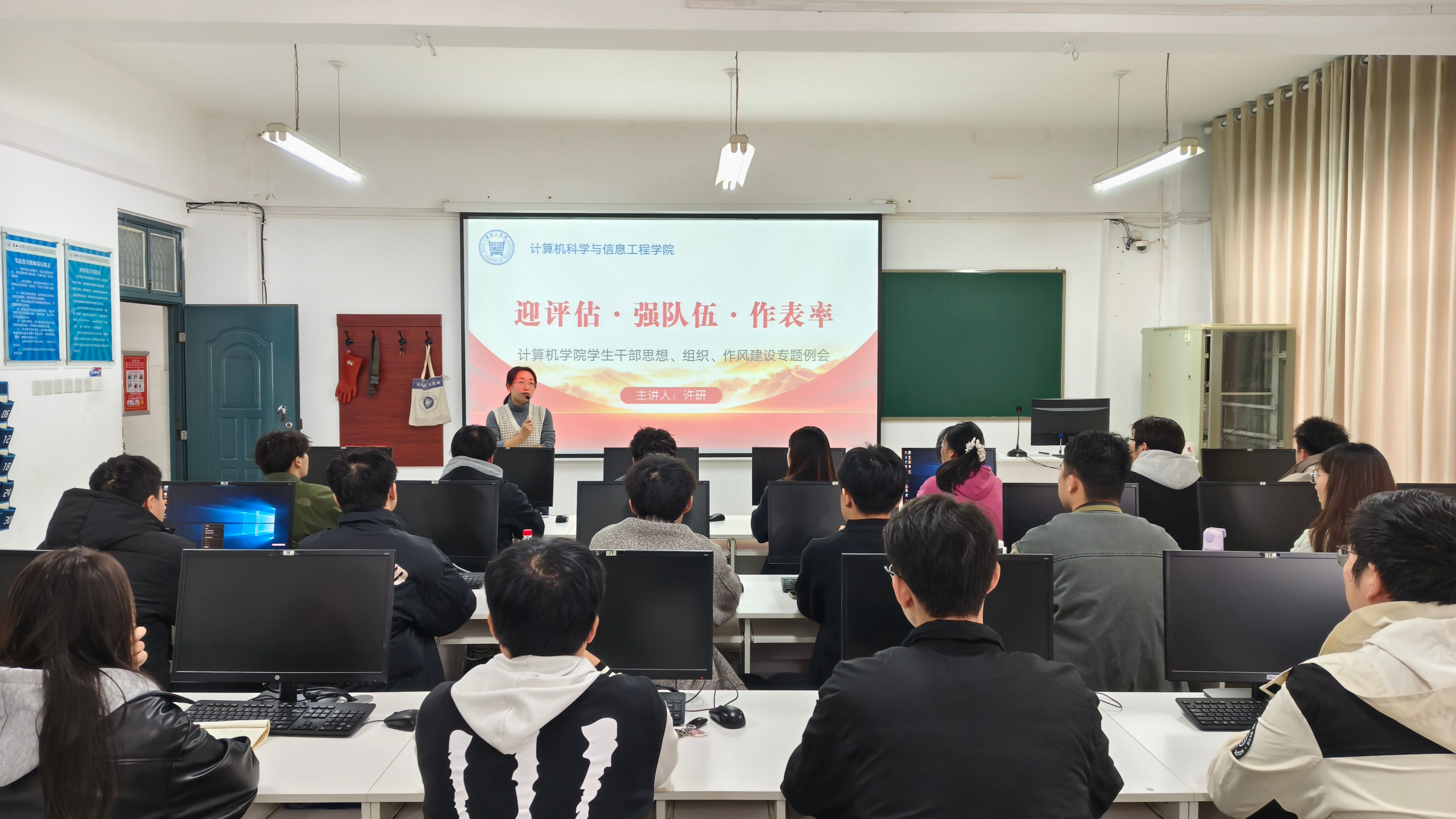 10月22日,计算机学院在A06-404召开学生干部工作例会,学院党委副书记许研以“迎评估 强队伍 作表率”为题发表讲话。