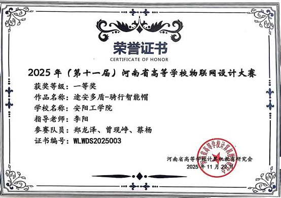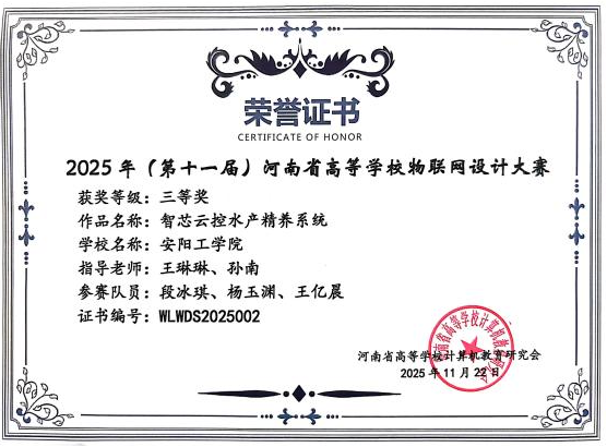 11月22日,由河南省高等学校计算机教育研究会主办、郑州经贸学院承办的“第十一届河南省高等学校物联网设计大赛”在郑州举行。我校yl9193永利集团选派的4支队伍参赛,并取得了一等奖1项、二等奖1项、三等奖1项的好成绩。