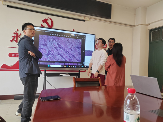 2025年3月20日,肿瘤医院专家来我院进行学术研讨,对目前的切片影像数据判断进一步进行了讲解,并在现场进行指导标注。
