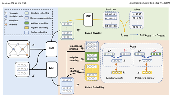 2024年我院卢政宇老师在《Information Sciences》发表了半监督对比学习图神经网络为主题的文章,该研究解决了之前方法构造的特征空间不够鲁棒的问题,推动了鲁棒图表示学习的发展。